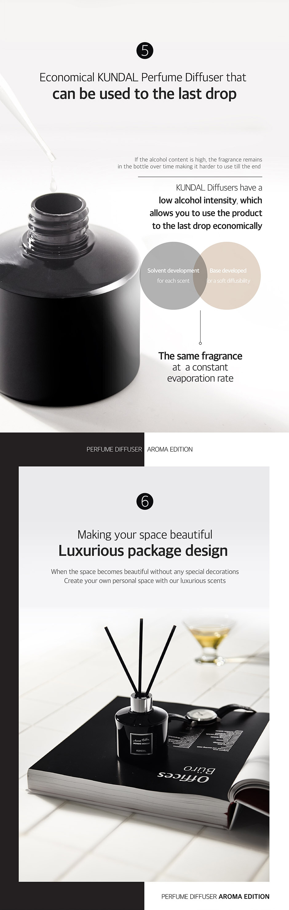 Kundal Perfume Diffuser is crafted by professional perfumer, made from plant-based natural ethanol. It produce with KUNDAL's technology for highly diffusible and has long-lasting scents.